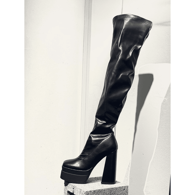 El dominio absoluto en forma de bota. Regla del Horizonte es una over-the-knee con plataforma y tacón ancho que redefine lo que significa “poder en cada paso”. Materiales veganos, es cómoda a pesar de su altura, gracias a su plataforma interna. Disponible en tallas 36 a 40. Perfecta para looks editoriales, festivales o noches que no terminan. Es la favorita de todas, la primera en agorarse en la tienda física.